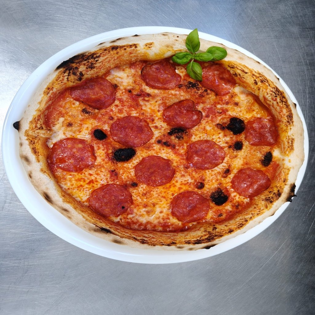 Rajčatová omáčka, mozzarella, salám Pepperoni, Grana Padano